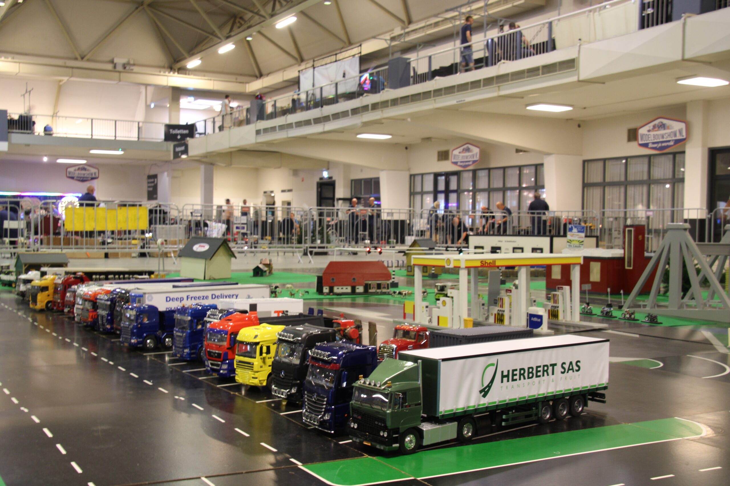 De Modeltruckers rijden op een eigen gebouwde baan, die ze naar ieder gewenste grootte kunnen leggen.